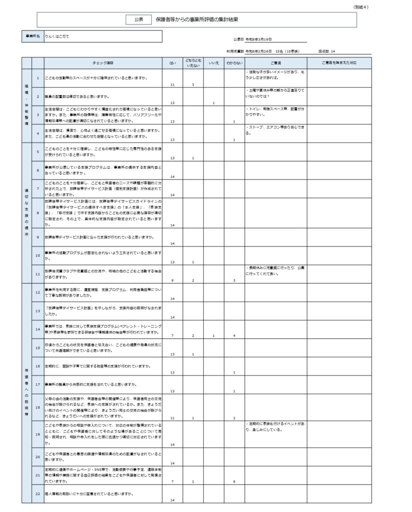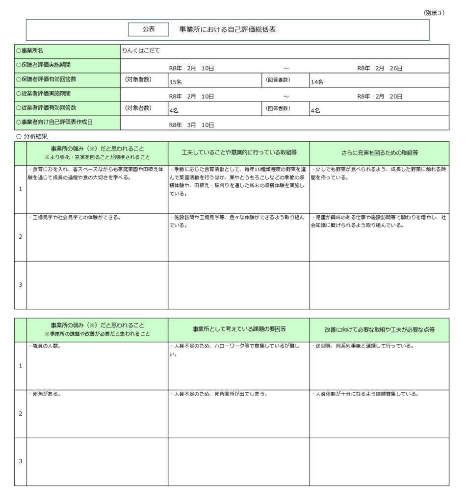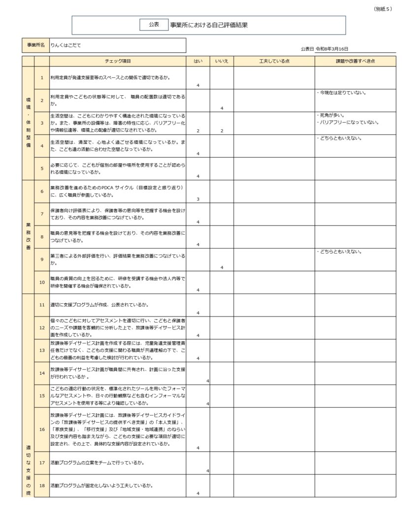 令和7年度 りんくはこだて 評価表 こちらからPDFの閲覧・ダウンロードも可能です。 令和7年自己評価表【はこだて】(総括)ダウンロード 令和7年自己評価表【はこだて】(保護者向け)ダウンロード 令和7年自己評価表【はこだて】(事業者向け)ダウンロード